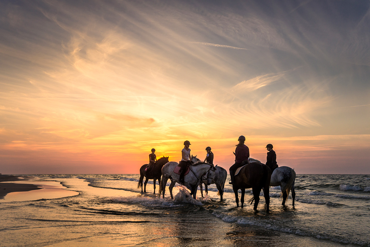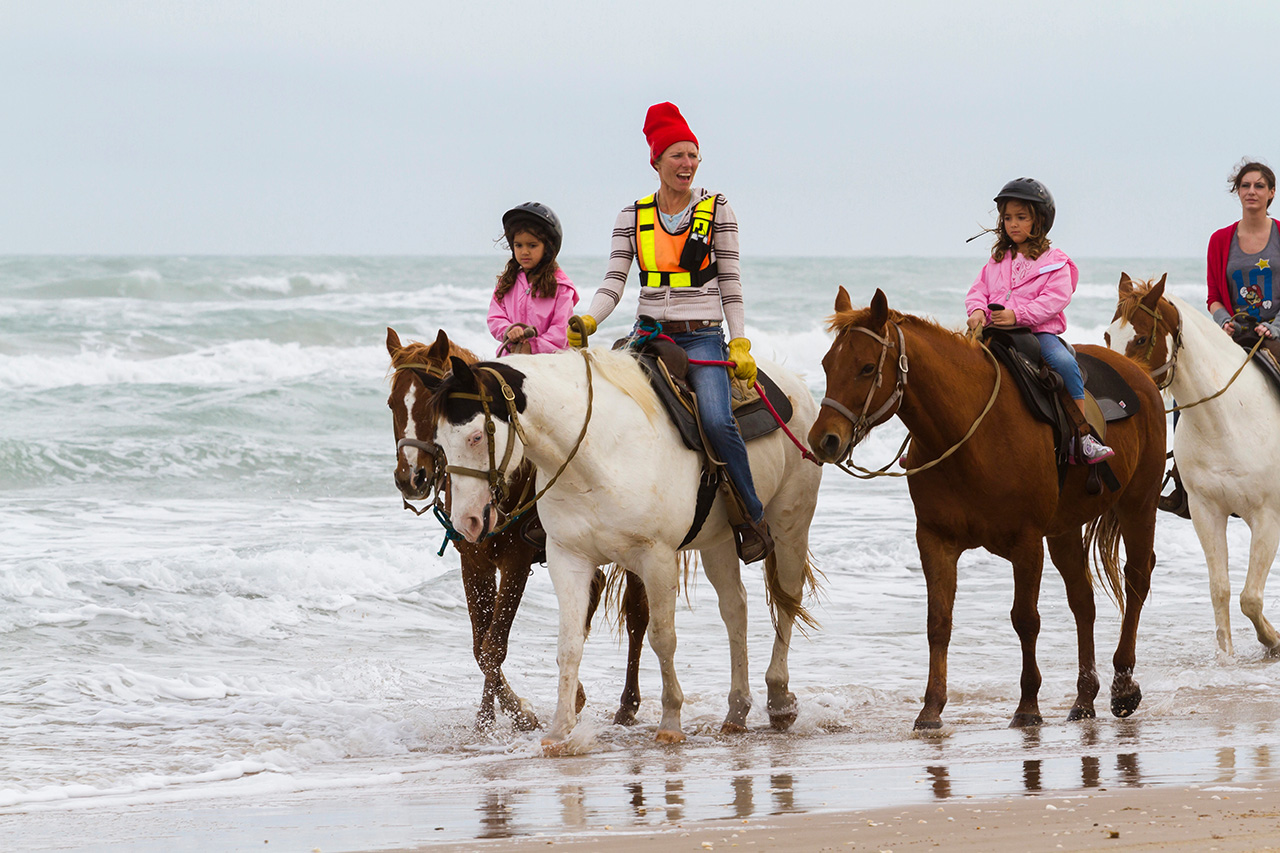 Niektóre gospodarstwa jeździeckie posiadają specjalne zezwolenia i mogą organizować jazdę w grupach pod nadzorem w wyznaczonych odcinkach wzdłuż plaży.